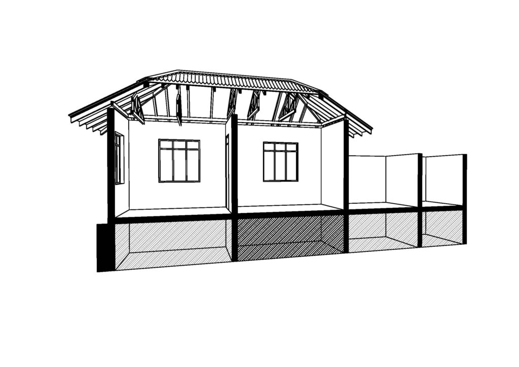 CONCRETE BLOCK WITH METAL ROOF