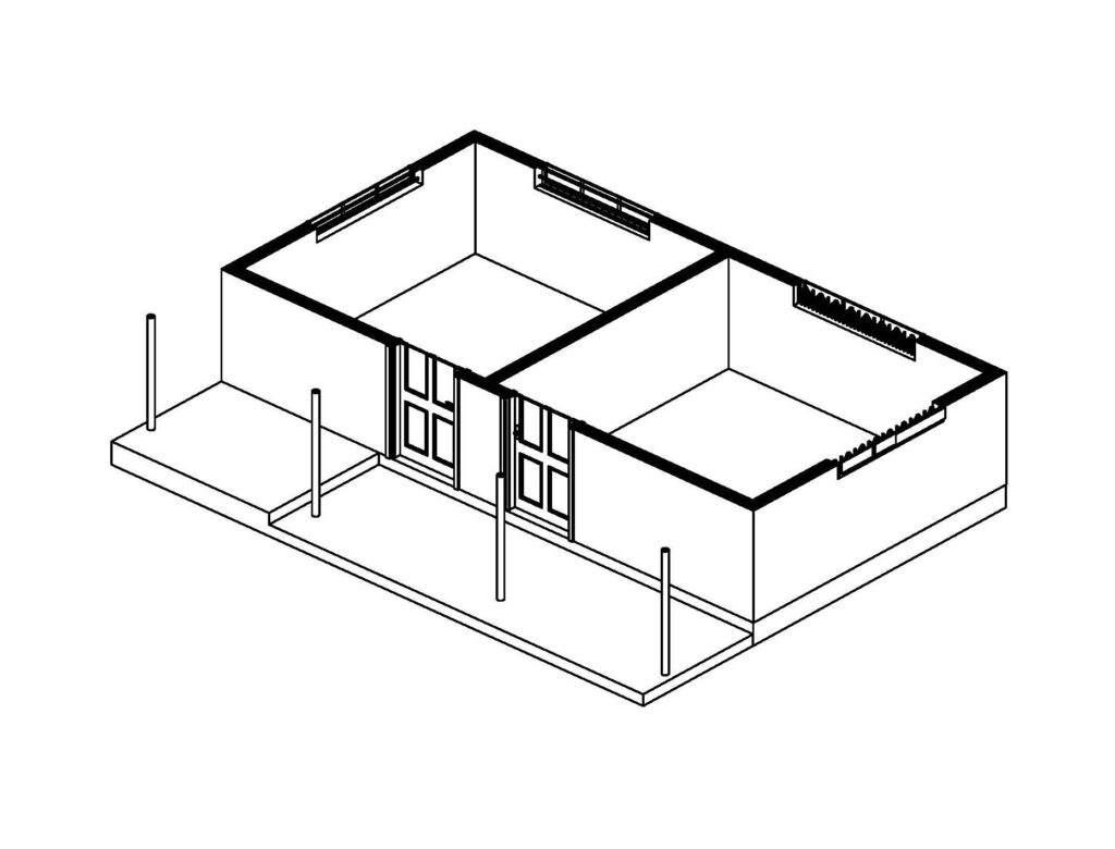 CONCRETE BLOCK WITH METAL ROOF