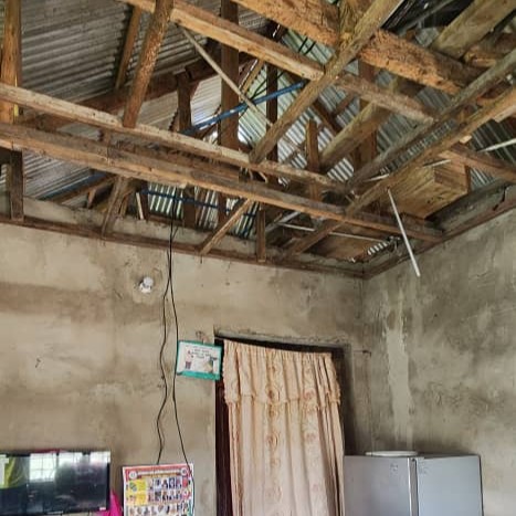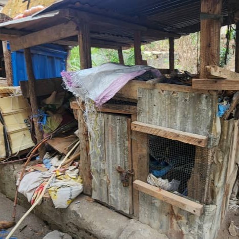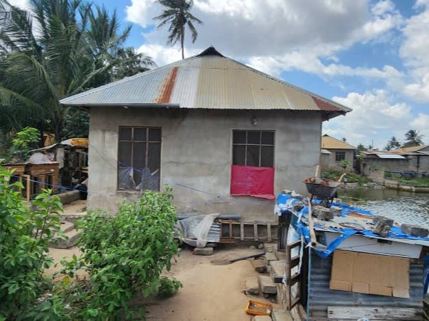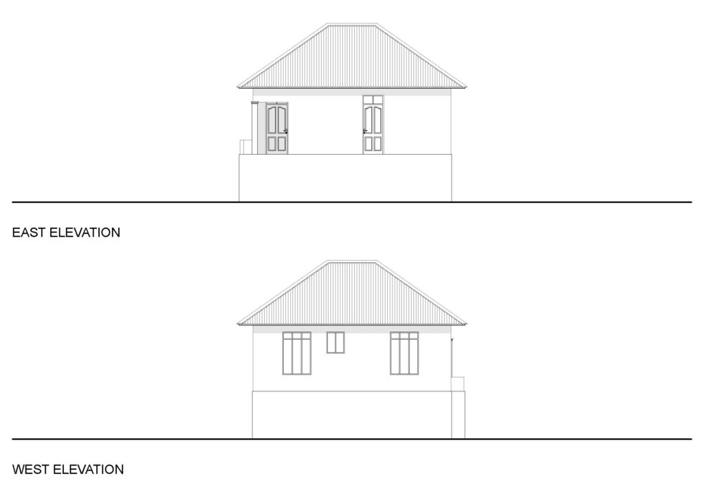 PLASTER COVERED CONCRETE BLOCK WITH METAL ROOF