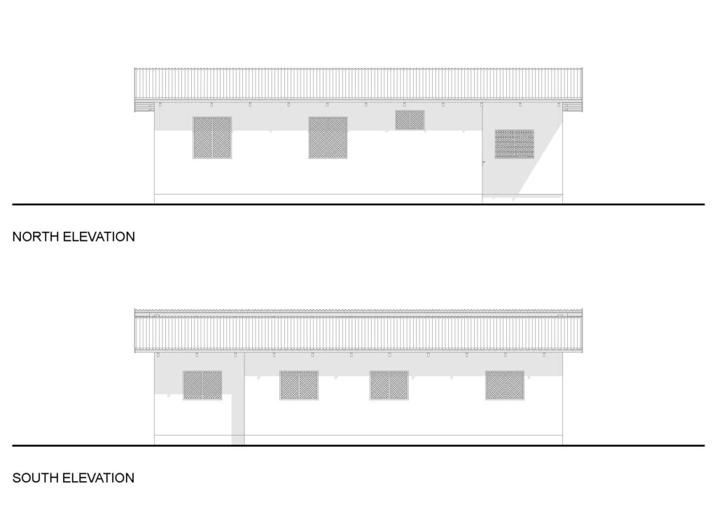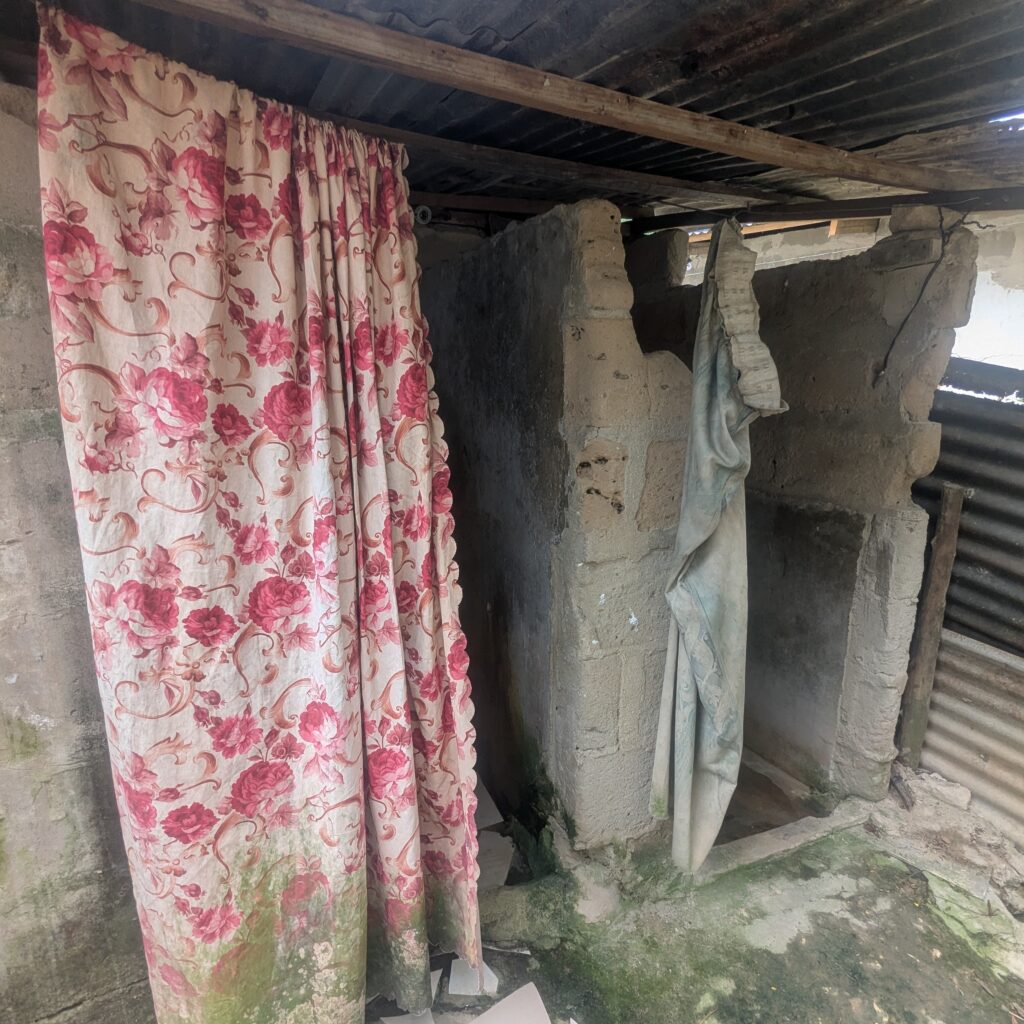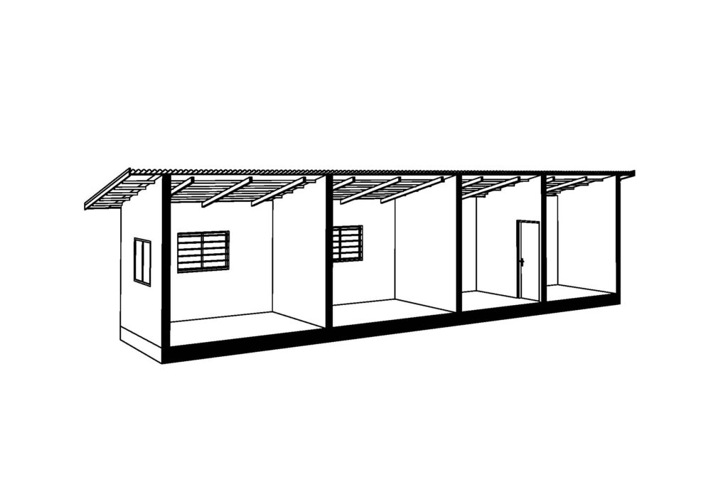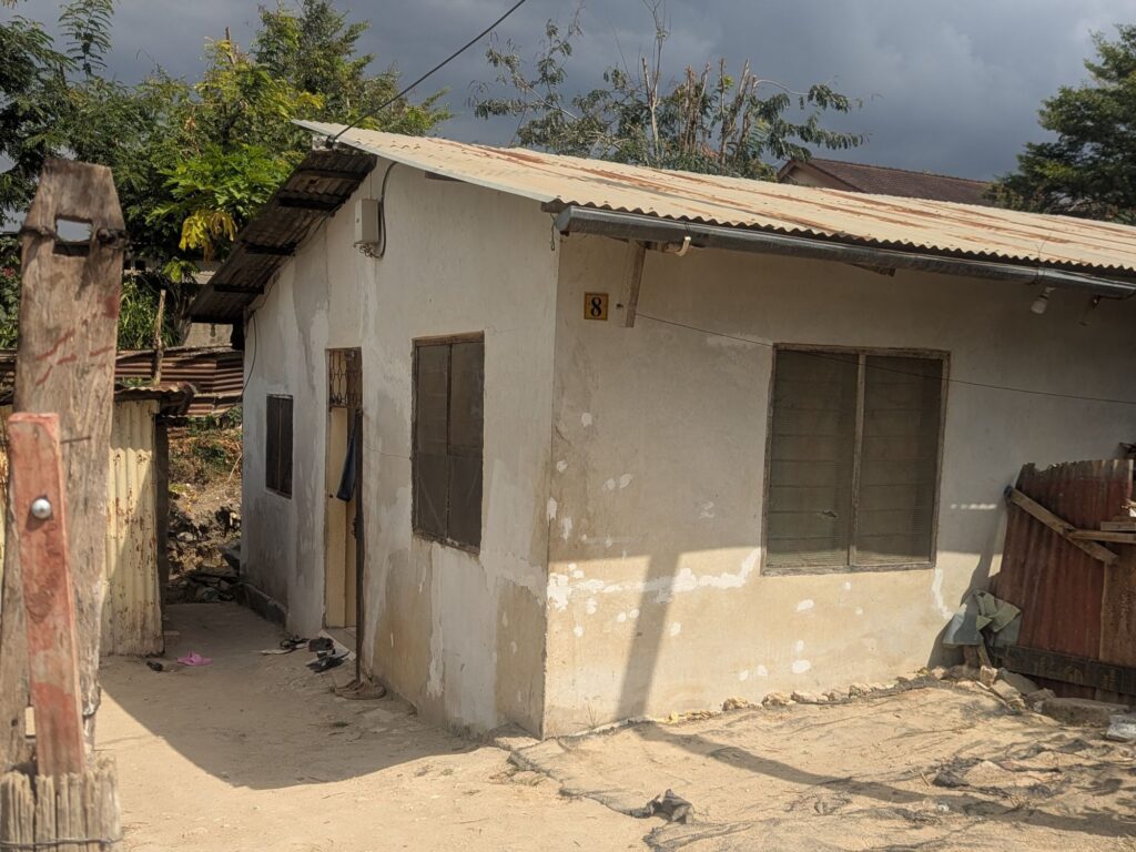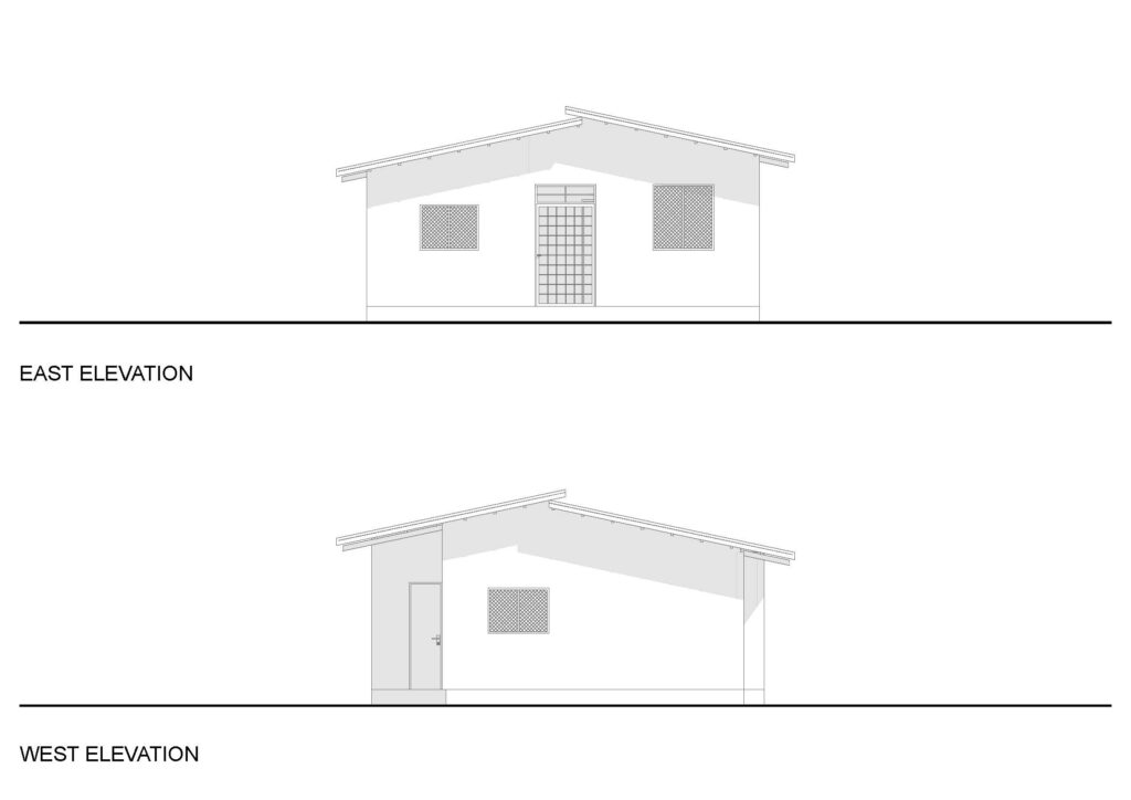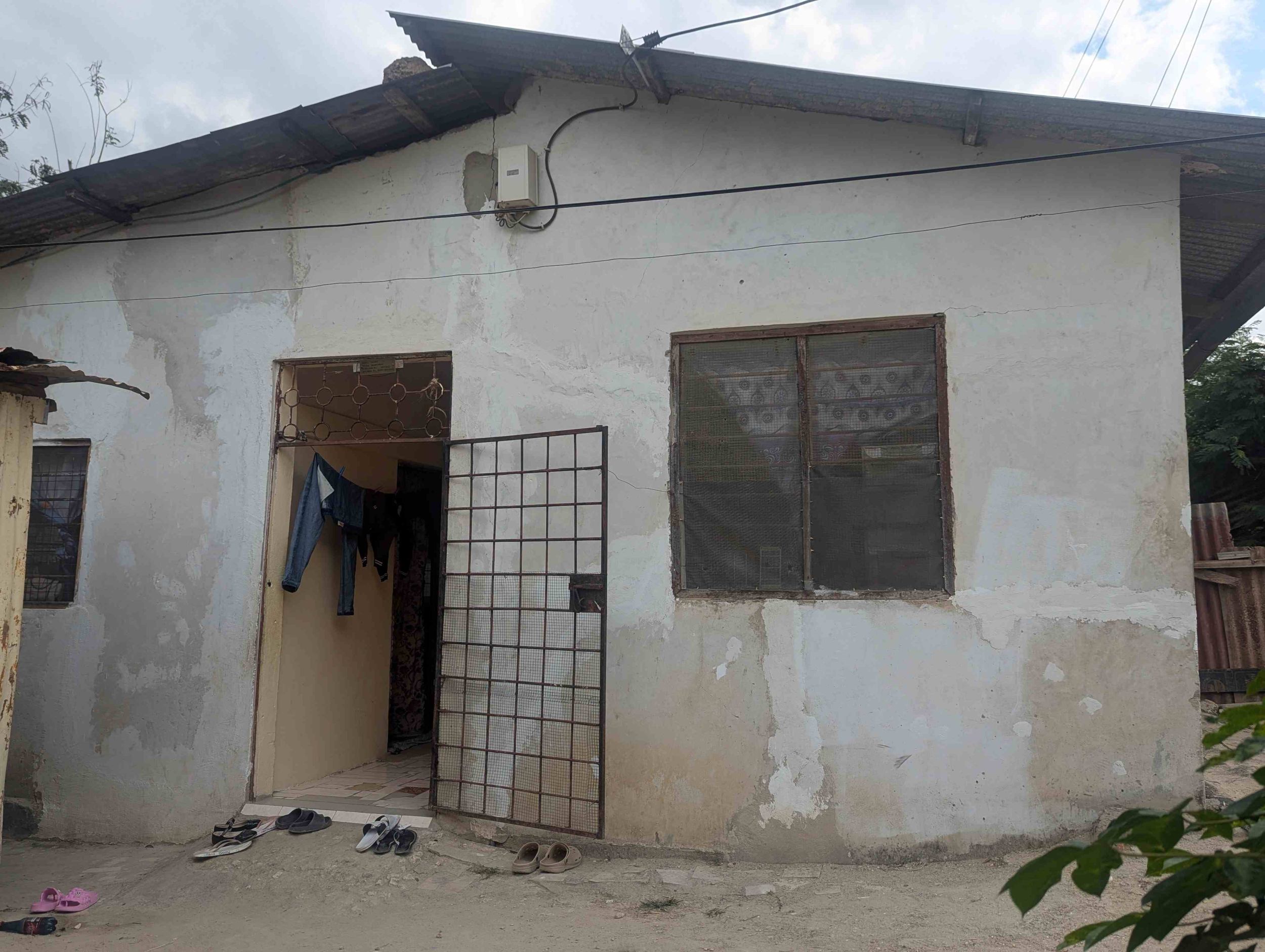 PLASTER COVERED CONCRETE BLOCK WITH METAL ROOF